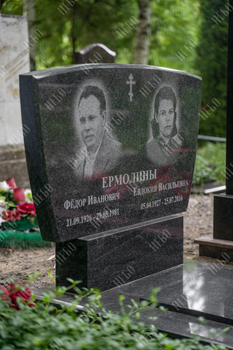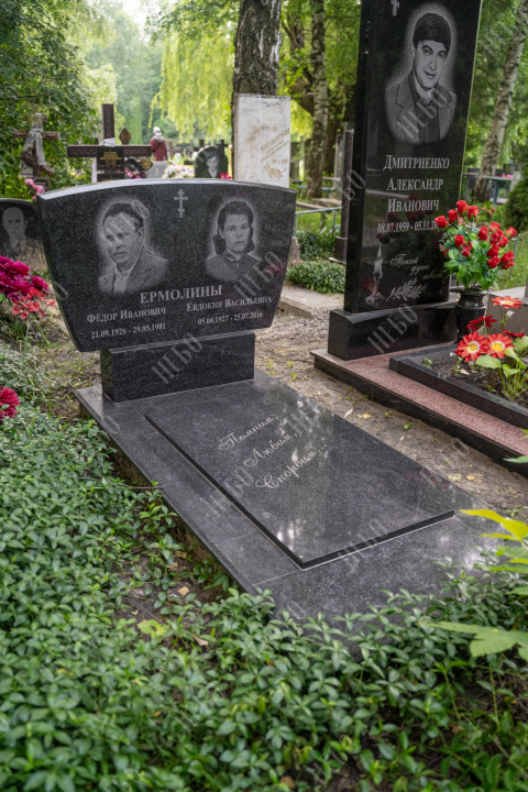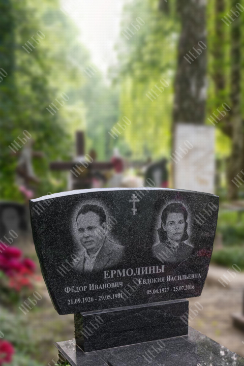 Горизонтальный памятник для родителей выполнен с использованием ассиметричных линий в дизайне. Невысокая стела содержит фотографии, информацию о покойных и изображение креста по центру. Закрытое надгробие исключает появление сорняков на поверхности гробницы, а эпитафия на плите придает ей завершенный внешний вид. Такое решение является практичным, экономичным и значительно упрощает уход за ритуальным изделием. Размеры памятника тщательно проработаны специалистами, что гарантирует конструкции долговечность и надежность.