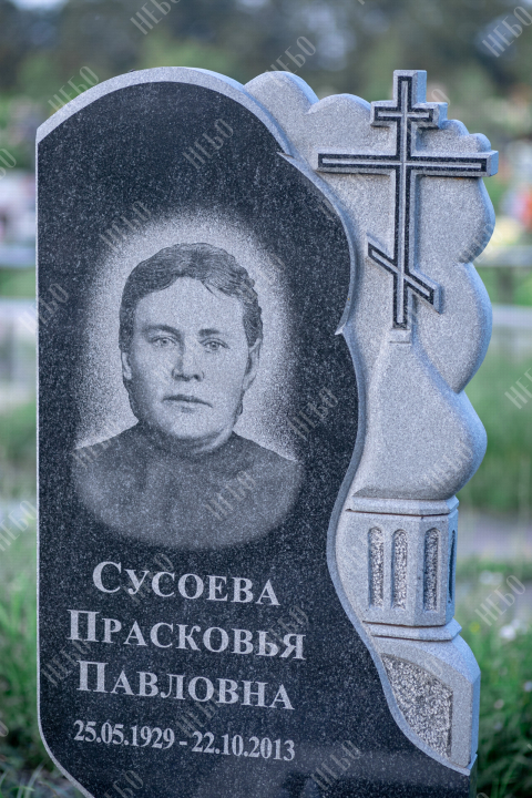 Для изготовления памятника использован гранит карельский габбро-диабаз. Это горная порода, отличающаяся прочностью и повышенной износостойкостью. Карельский габбро-диабаз устойчив к влаге и перепадам температур. Его плотность выше, чем у мрамора, поэтому именно его использовали при воздвижении вековых колонн исторических зданий. Гранитный памятник габбро-диабаз не требует особого ухода, обладает насыщенным черным цветом, что делает внешний вид памятника благородным и лаконичным.