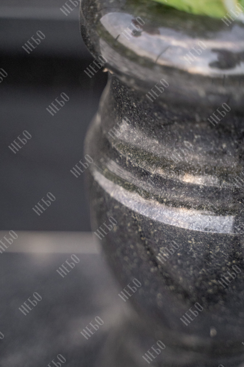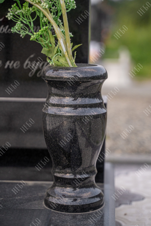 Памятник без креста с прямой стелой, вазой и закрытым надгробием выполнен в лаконичном черном цвете, заказать в Родниковской.