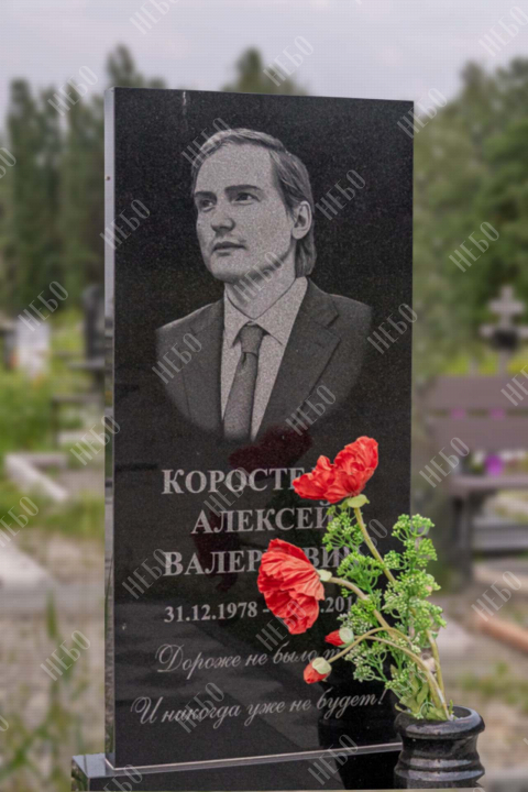 Для изготовления памятника использован гранит карельский габбро-диабаз. Это горная порода, отличающаяся прочностью и повышенной износостойкостью. Карельский габбро-диабаз устойчив к влаге и перепадам температур. Его плотность выше, чем у мрамора, поэтому именно его использовали при воздвижении вековых колонн исторических зданий. Гранитный памятник габбро-диабаз не требует особого ухода, обладает насыщенным черным цветом, что делает внешний вид памятника благородным и лаконичным.