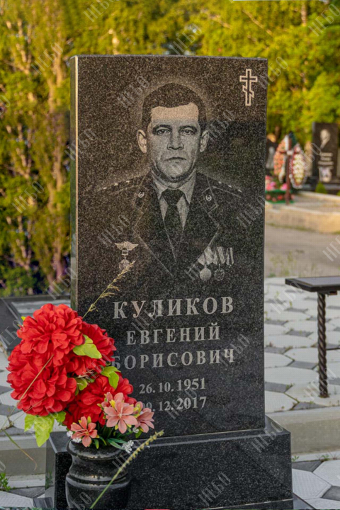 Для изготовления памятника использован гранит карельский габбро-диабаз. Это горная порода, отличающаяся прочностью и повышенной износостойкостью. Карельский габбро-диабаз устойчив к влаге и перепадам температур. Его плотность выше, чем у мрамора, поэтому именно его использовали при воздвижении вековых колонн исторических зданий. Гранитный памятник габбро-диабаз не требует особого ухода, обладает насыщенным черным цветом, что делает внешний вид памятника благородным и лаконичным.